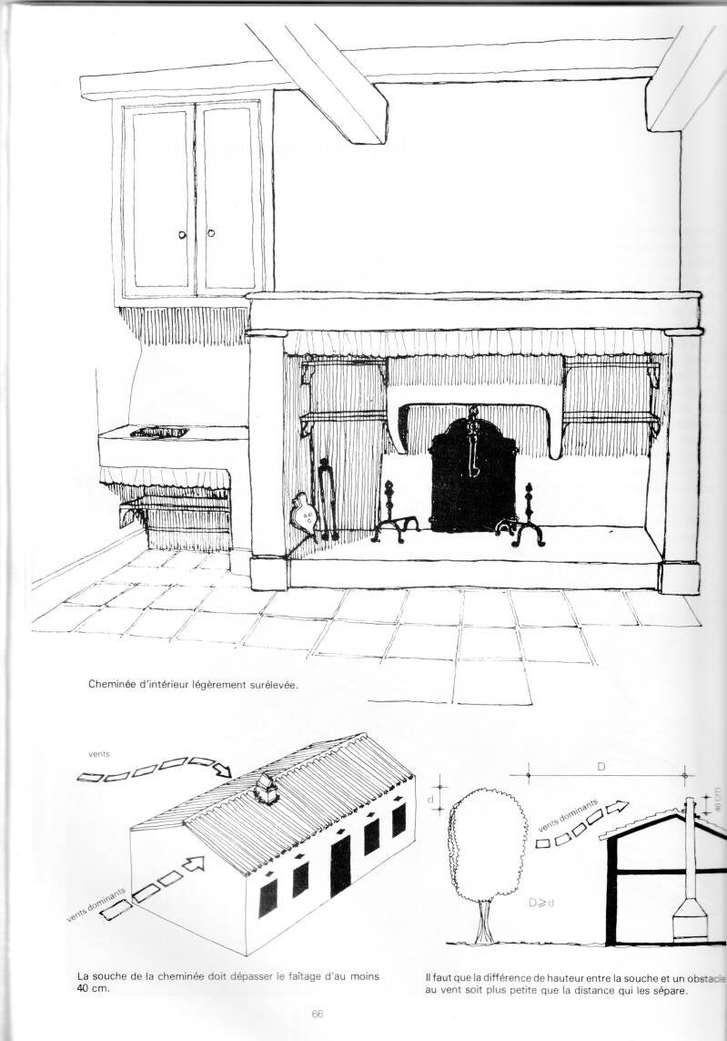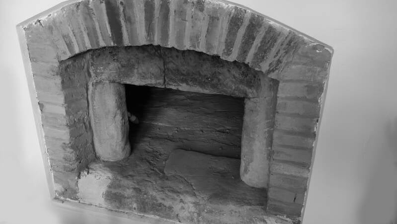 La cheminée était l'élément important de la salle commune, qui symbolisait le foyer. En général en plâtre, elle était constitué par une hotte, un manteau faisant saillie, et des montants légèrement en débord.